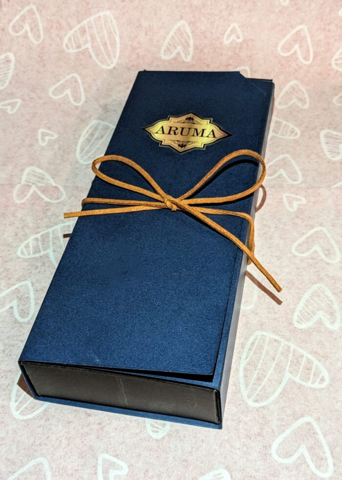Dos tabletas de chocolate envueltas en un paquete decorativo.